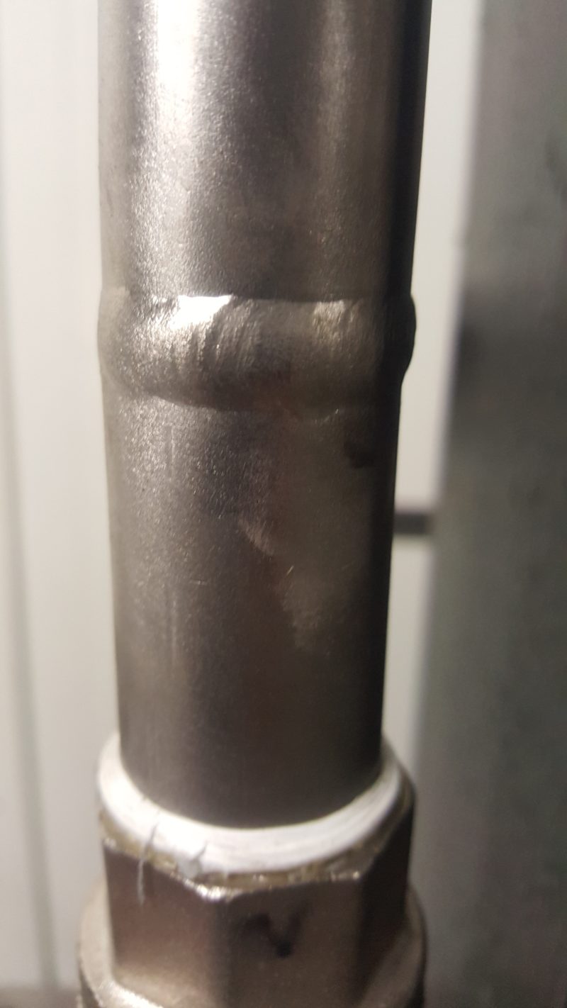 Dwa spawy na rurze DN 20 – niemal niewidoczne nawet bez szlifowania